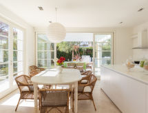 6 rom hus 200 m2 på 2 etasjer. Fullstendig renovert, moderne og stilfullt møbler: stor stue 30 m2 med etasjer, vindu mot gård med, TV, CD-spiller, stereoanlegg og air-conditioning. Utgang til hagen, til sitteplass i hagen. 1 dobblet rom med, dusj/bidèt/WC og air-conditioning. Utgang til hagen. 1 dobblet rom med, air-conditioning. Utgang til hagen. Stort kjøkken 20 m2 (5 kokeplater, ovn, oppvaskmaskin, elektrisk kaffemaskin) med spisebord. Utgang til hagen, til loggiaen. Dusj/bidé/WC. Gassoppvarming. øverste etasje: 1 dobblet rom med skråtak Lav dørhøyde 180 cm 300 cm med takvindu med, dusj/bidèt/WC, dobbel servant og air-conditioning. 1 dobblet rom med skråtak Lav dørhøyde 180 cm 250 cm med, bad/bidèt/WC, dobbel servant og air-conditioning. Åpen galleri. Naturstengulv. Sitteplass i hagen, hage 100 m2. Balkongmøbler, liggestoler. Fasiliteter: vaskemaskin. Internett (trådløs LAN [WLAN], gratis). Parkeringsplass (inngjerdet, 4 Biler). Velegnet for familier. I første etasje er det en stor lys stue med en komfortabel sittegruppe, et moderne kjøkken med stort spisebord og dører til bakhagen, to soverom med dobbeltseng og egne bad. I andre etasje, åpent galleri med to soverom med dobbeltseng og tilhørende bad med doble dusjer og badekar. Huset har aircondition. Eiendommen er helt inngjerdet. Det er en veranda. En oppvaskmaskin er tilgjengelig. Ved rengjøring.- Aktiviteter i nærheten