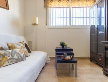Deltebre 14 km fra Riumar: Koselig leilighetshus "Deltebre". I sentrum av Deltebre, 14 km fra stranden. Fellesbruk: 1 badebasseng firkantet (3 x 6 m, dybde 90- 120 cm dyp, Sesongåpent: 01.Jan. - 31.Des.). Parkering. Butikk, supermarked, restaurant, bar 500 m. Deltebre er det perfekte reisemål for de som ser etter den spesielle seilopplevelsen.Interior