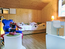 "Demi-Lune", 5 rom hytte 150 m2. Romlig og lys, komfortabelt og smakfullt møbler: inngang. Stue/spisestue med, kabel-TV. Utgang til terrassen. Åpent kjøkken (stekeovn, oppvaskmaskin, 4 keramiske kokeplater, elektrisk kaffemaskin, Internet(nespresso), ekstra, raclettegrill (ost)) med bar. Dusj/WC. Oppvarming. I underetasje: lekerom med, kabel-TV. øverste etasje: 2 rom, hvert rom med, 1 dobbeltseng (160 cm, lengde 200 cm). Utgang til balkongen, beliggenhet mot øst. 1 rom med, 1 dobbeltseng (140 cm, lengde 200 cm). 1 barnerom med 1 seng (70 cm lengde 170 cm), 1 uttrekkbar seng (2 x 90 cm, lengde 190 cm). Bad/dusj/WC. Terrassemøbler, grill, liggestoler (2). Meget vakker utsikt av fjellene og dalen. Fasiliteter: vaskemaskin, barneseng. Internett (trådløs LAN [WLAN], gratis). Parkeringsplass (2 Biler). Vennligst merk: røykfri bolig. Forbruket av røykere er forbudt. I hagen kan du nyte ferien til det fulle. En balkong er tilgjengelig.- fasiliteter