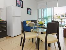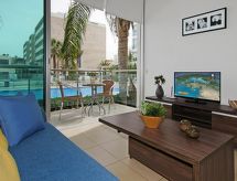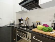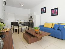2-rom leilighet for 2 mennesker, 50 m2, moderne møbler. Stue/spise rom med lokal TV og DVD. Røyking ikke tillatt. Internett (Wireless LAN [WLAN]). 1 soffa seng. Sove rom med 1 dobbel seng. Kjøkken med 4 varme plater, mikro wave, oven, spise bord, oppvaskmaskin, fridge og dyp fryser. Shower/WC. Balkong, terrasse møbler. Annet utstyr: safe, hårføner, strykejern, vaskemaskin. Det er en DVD-spiller.- Kjennetegn ved boligen