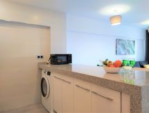 Playa Levante: Stor, enkel leilighetshus "Dona I", med 8 etasjer. I området 100 m fra sentrum av Benidorm, i distriktet Playa Levante, i en sentrale, travelt, solrikt posisjon, i byens hjerte, 400 m fra sjøen, 400 m fra stranden. Fellesbruk: tomt (inngjerdet) med planter, 1 badebasseng (11 x 5 m, dybde 110- 170 cm dyp, Sesongåpent: 01.Jun. - 30.Sep.). Utendørs dusj. I hbrukt: heis. Parkering på tomten, offentlig parkering. Supermarked, restaurant, bar 50 m, bussholdeplass "Benidorm" 100 m, togstasjon "Benidorm" 2 km. Golfbane(18 hull) 4 km, turstier fra hbrukt 1 km. Attraksjoner i nærheten: Aqualandia 2 km, Mundomar 2 km, Terra Mitica 6 km, Terra Natura 6 km, Alicante 40 km, Altea 7 km. Eieren godtar ikke noen ungdomsgrupper. Stille og rolig område. Stillhet og god oppførsel. Høydepunktet for hele familien på hver ferie er et besøk til fornøyelsesparken med sine mange attraksjoner.Interior