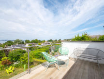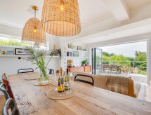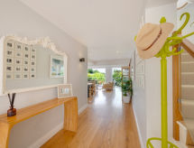 5 rom hus på 2 etasjer. Romlig og lys, komfortabelt og smakfullt møbler: åpen stue med, TV, flatskjerms TV og DVD. 1 rom med 2 senger. Åpent kjøkken (4 kokeplater, ovn, mikrobølgeovn, frys) med spisebord. Dusj/WC. øverste etasje: 1 dobblet rom med, 1 dobbeltseng og dusj/WC. 1 dobblet rom med, 1 dobbeltseng og TV (flatskjerms TV). Utgang til terrassen. 1 rom med 2 senger. Bad/dusj/WC. Oppvarming. Terrassemøbler. Vakker utsikt av havet. Fasiliteter: vaskemaskin, tørketrommel. Internett (trådløs LAN [WLAN], gratis). Vennligst merk: røykfritt hus. Avslapping og livsstil i hagen er uunnværlig på ferie. Dessuten er de bortskjemt med en klar utsikt over havet. Takket være vaskemaskinen finner du mindre klær å bære. Det er en DVD-spiller. En mikrobølgeovn er også tilgjengelig.- fasiliteter