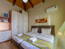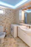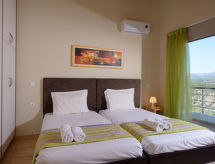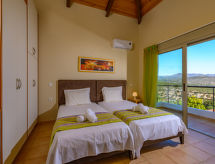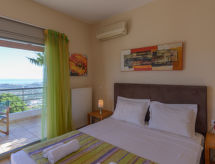 Rousa Limni 3 km fra Agios Nikolaos: Meget komfortabel villa "Dreamview", med 2 etasjer, frittstående, omgitt av trær. 4 hus i residensen. I utkanten, 3 km fra sentrum av Agios Nikolaos, i en roligt, solrikt posisjon, område med lite trafikk, 4 km fra sjøen, 4 km fra stranden, i det grønne. Privat: tomt (inngjerdet), vakker, velholdt hage med trær, svømmebasseng kantete (7 x 3 m, dybde 150 cm, Sesongåpent: 01.Apr. - 31.Okt.) med innebygde trapper. Terrasse, hagemøbler. Sengetøyskift 2 ganger i uken. Håndkleskift 2 ganger i uken. Romrengjøring 2 ganger i uken. Parkering ved hbrukt. Butikk 4 km, supermarked 600 m, restaurant 3 km, bakeri 600 m, café 3 km, sandstrand "Voulisma Beach" 12 km småstenstrand 4.5 km, dykkesenter 4 km. Minigolf 4.5 km. Attraksjoner i nærheten: Folklore Museum 4 km, Kritsa Village 6.5 km, Panagia Kera Church 6 km, Spinalonga Island 20 km. Velkjente innsjøer: Voulismeni 4 km. Vennligst merk: bil anbefales. Velegnet for barnefamilier, babyutstyr på forespørsel (inkl.). Grupper med tenåringer- bare ved forespørsel. På forespørsel: transporten flyplass- ferieområdet. Bbildet er et eksempel. Det er flere lignende leiligheter i samme hus. Objektnummer GR6150.8.1 ligger på samme tomt.Interior