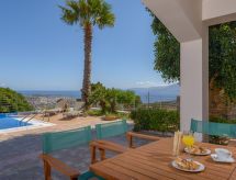 "Dreamview", 3 rom villa 117 m2 på 2 etasjer. Lys, meget komfortabelt møbler: stor stue/spisestue med, spisebord, separat WC og satelit-TV (flatskjerms TV), air-conditioning. Utgang til terrassen, til badebassenget. Åpent kjøkken (ovn, 4 keramiske kokeplater, brødrister, vannkoker, mikrobølgeovn, elektrisk kaffemaskin). øverste etasje: (trapp uten gelender), 1 dobblet rom med 2 senger og air-conditioning. Utgang til balkongen. 1 dobblet rom med, 1 dobbeltseng og air-conditioning. Utgang til balkongen. Dusj/WC. 2 balkonger. Liggestoler, overbygd balkong sitteplass. Meget vakker panoramautsikt av havet, fjellene, svømmebassenget og byen. Fasiliteter: vaskemaskin, strykejern, hårføner. Internett (trådløs LAN [WLAN], gratis). Vennligst merk: røykvarsler, brannslukkningsapparat. 1040K91003009601 Daglig rengjøring under dusjen tar liten tid. Dusjen er klar. Med inngjerdet tomt. Dessuten er de bortskjemt med en klar utsikt over havet. Den har en balkong. Den har en veranda. Huset er også utstyrt med et trådløst lokalnettverk (WLAN). Ved rengjøring.- fasiliteter