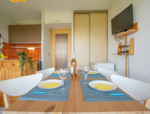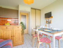 1 rom etromsleilighet 30 m2 i 7th etasje. Stue/spisestue med, 1 dobbel sovesoffa (140 cm, lengde 190 cm), TV. Alkove med 1 seng (90 cm lengde 190 cm). Inngang med 1 seng (70 cm lengde 190 cm). Kjøkkenkrok (2 keramiske kokeplater, kombinert mikrobølgeovn). Dusj/WC. Vakker panoramautsikt av landskapet. Parkeringsplass. Vennligst merk: max kjæledyr / hund tillatt 1 kjæledyr / hund tillatt. Røykvarsler. Residence. En ferie godbit for mennesker og dyr. Dette er en hund og katt vennlig ferie innkvartering.- Kjennetegn ved boligen