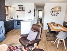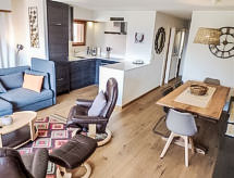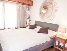 "Eaux Vives 101", 3 rom leilighet 70 m2 i 1st etasje, beliggenhet mot sør. Fullstendig renovert i 2013, moderne og luksuriøst møbler: stue/spisestue, beliggenhet mot sør med, spisehjørne og kabel-TV (flatskjerms TV), radio og DVD. Utgang til balkongen, beliggenhet mot sør. 1 rom med, 1 dobbeltseng (1 x 160 cm, lengde 200 cm). Utgang til balkongen, beliggenhet mot nord. 1 rom med 2 senger (90 cm lengde 190 cm), 1 sovesoffa. Utgang til balkongen, beliggenhet mot nord. Kjøkkenkrok (ovn, oppvaskmaskin, 4 induksjonskomfyr, elektrisk kaffemaskin, Internet(Nespresso), ekstra, kombinert mikrobølgeovn). Bad/WC, dusj/WC. 2 balkonger. Terrassemøbler, liggestoler (2). Hærlig utsikt av fjellene og dalen. Fasiliteter: safe, strykejern, barneseng for barn opp til 3 år, hårføner. Internett (trådløs LAN [WLAN], gratis). Garasje plass nr 101. Vennligst merk: røykfri bolig. Residence. En restaurant drives i umiddelbar nærhet. Et solarium er tilgjengelig og er tilgjengelig på eiendommen. For ditt velvære, nyt boblebadet i ferien. Det er en badstue. Et innendørsbasseng er tilgjengelig. Huset er også utstyrt med en tørketrommel. En DVD-spiller er tilgjengelig.- Kjennetegn ved boligen