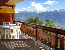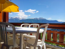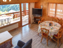 "Eaux Vives 202", 3 rom leilighet 80 m2 på 2 etasjer i 2nd etasje, beliggenhet mot sør. Komfortabelt og smakfullt møbler: stue/spisestue 22 m2 med panoramavindu beliggenhet mot sør med, spisehjørne og kabel-TV (flatskjerms TV), stereoanlegg og DVD. Utgang til balkongen. Kjøkkenkrok (4 kokeplater, stekeovn, oppvaskmaskin, brødrister, vannkoker, mikrobølgeovn, elektrisk kaffemaskin, Internet(Nespresso), ekstra, raclettegrill (chinoise, ost)). Sep. WC. øverste etasje: 1 rom med skråtak med 2 senger (100 cm lengde 200 cm), vaskeservant og dusj (privat). Utgang til balkongen. 1 rom med 2 senger (100 cm lengde 200 cm), radio. Utgang til balkongen. Bad/WC. Terrassemøbler, liggestoler (4), lager. Hærlig utsikt av fjellene og dalen. Fasiliteter: strykejern, høy barnestol barneseng for barn opp til 2 år, hårføner. Internett (trådløs LAN [WLAN], gratis). Garasje plass nr 202. Vennligst merk: røykfri bolig. Max 1 lite kjæledyr / liten hund tillatt. Residence. Det er en restaurant på torget. Ferieboligen har en passasjerheis. Et solarium er tilgjengelig og er tilgjengelig på eiendommen. Med sin egen boblebad., Dra nytte av boblebadet. Å besøke den eksisterende badstuen, gjør kroppen din i svette. Det er et innendørsbasseng. Det er en tørketrommel. En DVD-spiller er tilgjengelig. Den har en komfyr.- Kjennetegn ved boligen