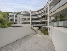 2 rom leilighet 50 m2 i 4th etasje. Vakkert og moderne møbler: stue/spisestue med, 1 dobbel sovesoffa (1 x 140 cm, lengde 190 cm), TV (flatskjerms TV), radiator og motoriserte persienner. Utgang til terrassen. 1 rom med, 1 dobbeltseng (160 cm, lengde 200 cm), air-conditioning. Utgang til terrassen. Åpent kjøkken (oppvaskmaskin, 3 induksjonskomfyr, brødrister, vannkoker, frys, elektrisk kaffemaskin, Internet(Nespresso), ekstra). Dusj, sep. WC. Stor terrasse 47 m2, østvendt beliggenhet. Terrassemøbler. Utsikt av dalen og landskapet. Fasiliteter: vaskemaskin, strykejern, hårføner. Internett (trådløs LAN [WLAN], ekstra). Parkeringsplass plass nr 38 (inngjerdet). Vennligst merk: røykfri bolig. 1 lite kjæledyr / liten hund tillatt. Røykvarsler. Objekt har en heis. Huset er også utstyrt med oppvaskmaskin. Et basseng er tilgjengelig.- Kjennetegn ved boligen