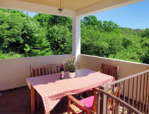 3 rom hus 70 m2 på 2 etasjer. 1 rom med, 1 dobbeltseng (160 cm, lengde 200 cm). Dusj/WC. Airconditioning. øverste etasje: (utendørs trapp) stue/spisestue med, 1 sovesoffa og satelit-TV (flatskjerms TV), air-conditioning. Utgang til balkongen. 1 rom med 2 senger (90 cm lengde 200 cm). Åpent kjøkken (1 kokeplate, stekeovn, 3 gassbrennere, brødrister, vannkoker, frys, elektrisk kaffemaskin). Dusj/WC. Balkong. Balkongmøbler. Utsikt av havet. Vennligst merk: røykfritt hus. Overrasket med en fantastisk utsikt over havet. Passer til grill.- fasiliteter