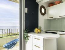 Residens "Edouard VII", med 5 etasjer. I området Milady, i området 1.5 km fra sentrum av Biarritz, i en solrikt posisjon, 50 m fra sjøen, 100 m fra stranden, direkte tilgang til stranden. Fellesbruk: park 2 ha, vakker hage for avslappning, 1 badebasseng inngjerdet (8 x 12 m, Sesongåpent: 15.Jun. - 15.Sep.). Tennis (2 x hard bane). I anlegget: heis. Parkering (begrenset antall plasser). Butikk 400 m, daglivarehandel 900 m, supermarked 3 km, restaurant 400 m, bakeri 900 m, bussholdeplass "Thermes Marins" 300 m, togstasjon "La Négresse" 2.8 km, sandstrand "Plage de La Milady" 100 m, termalbad "Thalmar" 100 m. Golfbane(9 hull) 1 km, surfeskole 100 m, minigolf 2 km, rideskole 1 km. Attraksjoner i nærheten: Cité de l'Océan 400 m, Marché des Halles 2 km, Aquarium de Biarritz 2.6 km, Bayonne 12 km, Saint-Jean-de-Luz 13 km, San-Sebastian, Espagne 49 km. Turstier Sentier du Littoral 100 m, La Rhune 21 km. Vennligst merk: bil anbefales. Bygning med elektriske portener. Nøkkelleveringen skjer i INTERHOME i Biarritz, 3 km. Det er flere lignende leiligheter i samme hus. Fans av ballsporter som tennis vil finne en rekke muligheter på den eksisterende tennisbanen.Interior