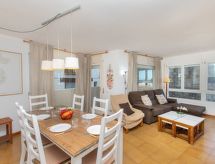 "El Cargol", 4 rom leilighet 80 m2 i 1st etasje. Romlig og lys, komfortabelt møbler: inngang med, spisebord. Stue/spisestue med, digital TV. Utgang til terrassen. 1 rom med, 1 dobbeltseng (135 cm, lengde 190 cm). Utgang til terrassen. 1 rom med 2 senger (80 cm lengde 190 cm). 1 rom med, 1 uttrekkbar seng (2 pers. 2 x 90 cm, lengde 190 cm). Kjøkken (stekeovn, 4 keramiske kokeplater, brødrister, vannkoker, mikrobølgeovn, elektrisk kaffemaskin) med serveringsåpning. Utgang til verandraen. 2 bad/bidé/WC. Vannkoker (50 liter). Oppvarmingsalternativ. Balkong 5 m2, terrasse 8 m2, dekt. Balkongmøbler. Hærlig utsikt av havet. Fasiliteter: vaskemaskin, strykejern, hårføner. Vennligst merk: røykfri bolig. Bare TV ES. HUTG013565 Et badekar er tilgjengelig. Dessuten er de bortskjemt med en klar utsikt over havet. En balkong er tilgjengelig. En terrasse er tilgjengelig.- fasiliteter