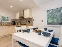 "Etoile de Mer", 2 rom hytte 40 m2. Fullstendig renovert i 2021, moderne møbler: stue/spisestue med, 1 dobbel sovesoffa (140 cm, lengde 190 cm), spisebord. Utgang til terrassen. 1 rom med 1 seng (160 cm lengde 190 cm). Utgang til terrassen. Åpent kjøkken (4 kokeplater, stekeovn, oppvaskmaskin, 2 keramiske kokeplater, vannkoker, elektrisk kaffemaskin, Internet(Senseo), ekstra). Dusj/WC. Varmekabler i gulvet. Terrasse 10 m2, stor hage. Terrassemøbler, elektrisk grill (flyttbar), liggestoler (2). Delvis utsikt av vannet. Fasiliteter: vaskemaskin, høy barnestol barneseng, hårføner. Internett (trådløs LAN [WLAN], gratis). Parkeringsplass (1 Bil). Vennligst merk: røykvarsler, brannslukkningsapparat. Tilbud fra en privatperson i henhold til art. 155, IV av CGI. Hagen vår venter på deg for en dukkert i avslapning.- fasiliteter