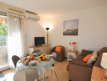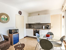 2 rom leilighet 26 m2 i 1st etasje, beliggenhet mot sør. Praktiskt og vakkert møbler: stue/spisestue med, 1 sovesoffa (120 cm, lengde 190 cm), TV (flatskjerms TV), air-conditioning. Utgang til terrassen. 1 rom med, 1 dobbeltseng (1 x 140 cm, lengde 190 cm). Åpent kjøkken (stekeovn, 4 keramiske kokeplater, brødrister, vannkoker, elektrisk kaffemaskin, kombinert mikrobølgeovn). Dusj, sep. WC. El-oppvarming, vannkoker (150 liter). Balkong 4 m2, beliggenhet mot sør. Balkongmøbler, liggestoler (2). Utsikt av hagen. Fasiliteter: vaskemaskin, myggnett. Internett (trådløs LAN [WLAN], ekstra). Parkeringsplass plass nr 351. Vennligst merk: velegnet for familier. Bare TV FR. Røykvarsler. Objekt har en heis. Finn ut om det eksisterende TV-apparatet. Om lokale nyheter eller internasjonale nyheter, med fjernsynet er du alltid godt informert.- Kjennetegn ved boligen