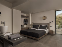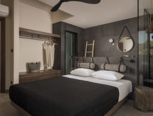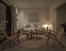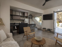 Moderne, fin villa "Eve", med 2 etasjer, rekkehus. I området Pefkoi 4.9 km fra sentrum av Lindos, i en solrikt posisjon, 190 m fra sjøen, 190 m fra stranden. Privat: vakker, velholdt hage med blomster og trær, svømmebasseng kantete (30 m2, Sesongåpent: 01.Apr. - 30.Nov.). Parkering ved hbrukt. Daglivarehandel, supermarked, restaurant, bar, bakeri, café 400 m, sandstrand "Pefkoi" 190 m. Golfbane(18 hull) 35.8 km, rideskole 41.3 km. Attraksjoner i nærheten: Valley of the Butterflies 48.7 km, Lindos Acropolis 5.2 km, Asklipio Castle 17.2 km, Palace of the Grand Master of Knights 54.2 km, Medieval City of Rhodes 53 km, Waterpark Rhodes 43.7 km. Vennligst merk: bil anbefales. Velegnet for barnefamilier, babyutstyr på forespørsel (inkl.). Grupper med tenåringer- bare ved forespørsel. Det er flere lignende leiligheter i samme hus. Objektnummer GR5010.3.1 ligger på samme tomt.Interior
