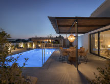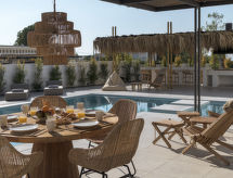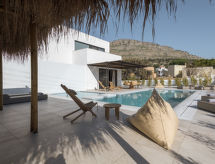"Eve", 4 rom villa 160 m2 på 2 etasjer. Romlig og lys, vakkert og moderne møbler: åpen stue med, satelit-TV (flatskjerms TV). Utgang til badebassenget. 1 dobblet rom med, 1 dobbeltseng og dusj/WC. Utgang til hagen. Åpent kjøkken (stekeovn, oppvaskmaskin, 4 keramiske kokeplater, brødrister, vannkoker, mikrobølgeovn, elektrisk kaffemaskin). Airconditioning. øverste etasje: (trapp uten gelender), 1 dobblet rom med, 1 dobbeltseng og dusj/WC. Utgang til balkongen. 1 dobblet rom med 2 senger og dusj/WC. Utgang til balkongen. Airconditioning. 2 små balkonger. Grill. Vakker utsikt av havet og landskapet. Fasiliteter: vaskemaskin, safe, strykejern, hårføner. Internett (trådløs LAN [WLAN], gratis). 1149789 En tilknyttet idyllisk hage inviterer deg til å ligge i solen. Overrasket med en fantastisk utsikt over havet. Den undertrykkende varmen kan legge stor belastning på kropp og sinn. Derfor er lokalene utstyrt med air condition. Det har et privat basseng. Hvis været ikke spiller, er det også en TV.- fasiliteter