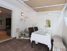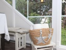 3 rom leilighet 70 m2, i forhøyet bunnetasje. Komfortabelt og koseligt møbler: inngang. 1 dobblet rom. Stue/soverom med, 1 dobbel sovesoffa og satelit-TV (flatskjerms TV). Stort, åpent kjøkken (ovn, oppvaskmaskin, 4 keramiske kokeplater, mikrobølgeovn) med, spisebord. Dusj/WC. Drivhus sitteplass. Fasiliteter: hårføner. Internett (trådløs LAN [WLAN], gratis). Vennligst merk: røykfri bolig. Røykvarsler. Eiendommen er helt inngjerdet. Parkering er tilgjengelig.- fasiliteter
