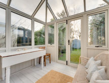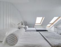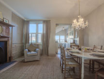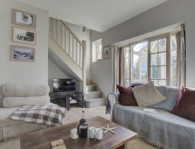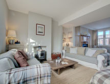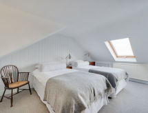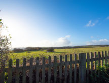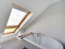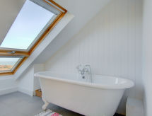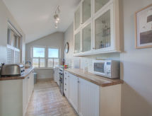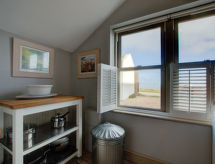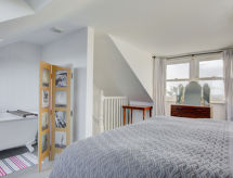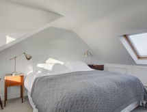 4 rom hytte på 3 etasjer. Lys, komfortabelt og smakfullt møbler: stue/spisestue med, åpen peis og TV (flatskjerms TV), DVD. Utgang til hagen. Kjøkken (4 kokeplater, ovn, oppvaskmaskin, mikrobølgeovn, frys). Sep. WC. øverste etasje: 2 rom, hvert rom med, 1 dobbeltseng. Bad/dusj/WC. øverste etasje: 1 rom med, 1 dobbeltseng. Hage. Terrassemøbler, grill, drivhus. God utsikt av havet. Fasiliteter: vaskemaskin, tørketrommel. Internett (trådløs LAN [WLAN], gratis). Parkeringsplass plass nr 2. Vennligst merk: røykfritt hus. Max kjæledyr/små hunder tillatt 2 kjæledyr/små hunder tillatt. I hagen kan du nyte ferien til det fulle. En veranda er tilgjengelig. Passer til grill. En barneseng er tilgjengelig. Det er en brannkasse. Hvis været ikke spiller, er det også en TV. Huset er også utstyrt med internettforbindelse. Den har en DVD-spiller.- Kjennetegn ved boligen