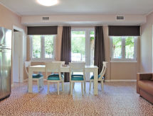 Familievennlig resort "Baia Verde". 85 hus i resorten. I det lille tettstedet Pieve Vecchia 1.8 km fra sentrum av Manerba del Garda, 500 m fra innsjø 500 m fra stranden, direkte tilgang til stranden. Fellesbruk: tomt 40'000 m2 (inngjerdet), park, trær, 1 badebasseng nyre-formet (375 m2, dybde 20- 140 cm dyp, Sesongåpent: 01.Apr. - 30.Sep.). Dusj/WC ved bassenget, barnebasseng, utendørs dusj, boblebad, bassenghus med dusj og WC, terrasse, lekeplass (sandkasse). I anlegget: resepsjon, restaurant, bar, oppholdsrom, trådløst LAN [WLAN], boblebad, bordtennis, fotballsbord, butikkpingmuligheter, kiosk, solterrasse, vaskemaskin, tørketrommel (for felles bruk ekstra). Parkering (begrenset antall plasser) på tomten. Supermarked 1 km, småstenstrand 500 m. Golfbane 7.5 km. Attraksjoner i nærheten: San Felice del Benaco 3.5 km, Salò 10 km, Brescia 40 km. Vennligst merk: underholdning under høysesongen. Velegnet for barnefamilier, babyutstyr på forespørsel (ekstra). Plikt til å bruke badehatter.Interior
