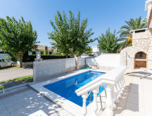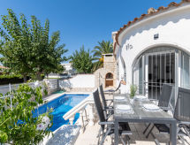 Fin, koselig hus "Flamenco", renovert. I området Carmençó 200 m fra sentrum av Empuriabrava, i en solrikt posisjon boligområde, utmerkt område: midt i sentrum, men roligt, område med lite trafikk, 800 m fra sjøen. Privat: svømmebasseng kantete (6 x 3 m, dybde 150- 160 cm dyp, Sesongåpent: 01.Apr. - 30.Okt.). Hagemøbler. I hbrukt: vaskemaskin. Offentlig parkering på veien. Butikk, daglivarehandel, supermarked 400 m, kjøpesenter, restaurant, bar 300 m, bussholdeplass 2.8 km, sandstrand "Empuriabrava" 800 m. Sporthavn 850 m, golfbane(18 hull) 15 km, surfeskole, seileskole 800 m, tennis 2 km, minigolf 100 m, rideskole 2 km, turstier fra hbrukt, sykkelvei 300 m. Attraksjoner i nærheten: Centro paracaídismo y túnel del viento 2 km, Parque Acuático Aquabrava Roses 6 km, Museo Dalí Figueres 15 km, Casino y festival de Perelada 12 km, Ruïnas de St. Martí de Empúries 21 km, Monasterio de Sant Pere de Rodes 23 km. Eieren godtar ingen grupper. Eieren godtar ikke noen ungdomsgrupper. Enten profesjonell eller amatør, ikke nøl med og trene avrundingen på den nærliggende golfbanen. Ridning er en populær aktivitet her, ideell for de som elsker hester og natur. Idrettsutøvere kan matche på den tilgjengelige tennisbanen.Interior