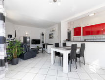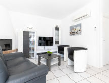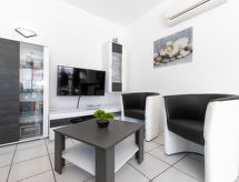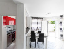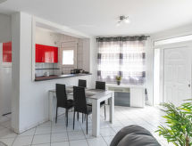 3 rom hus 60 m2. Lys, renovert, komfortabelt og moderne møbler: stue/spisestue med, åpen peis (kun til dekorasjon), spisebord, satelit-TV, DVD, tilgjengelig DVD samling, air-conditioning og varmluft oppvarming. Utgang til badebassenget. 1 rom med, 1 dobbeltseng (180 cm, lengde 200 cm), vifte. 1 rom med, 1 dobbeltseng (2 x 90 cm, lengde 200 cm), vifte. Kjøkken (stekeovn, oppvaskmaskin, 3 induksjonskomfyr, brødrister, vannkoker, mikrobølgeovn, frys, elektrisk kaffemaskin). Dusj/WC. Terrasse. Terrassemøbler. Fasiliteter: vaskemaskin, tørketrommel, strykejern, hårføner. Internett (trådløs LAN [WLAN], gratis). Vennligst merk: røykfritt hus. Bare TV DE, FR. HUTG042169 Et basseng er tilgjengelig. Det har et privat basseng. Det er en tørketrommel. En DVD-spiller er tilgjengelig. Hva ville et moderne kjøkken være uten mikrobølgeovn? Den som selvfølgelig er tilgjengelig.- fasiliteter