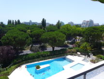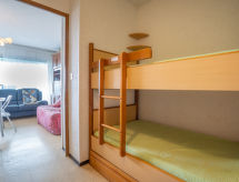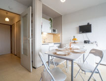 1 rom leilighet 25 m2 i 5th etasje. Stue/spisestue med, 1 dobbel sovesoffa (140 cm, lengde 190 cm), TV (flatskjerms TV). Inngang med, 1 x 2 køysenger (90 cm, lengde 190 cm). Kjøkkenkrok (2 kokeplater, miniovn, brødrister, vannkoker, mikrobølgeovn, elektrisk kaffemaskin). Bad, sep. WC. Oppvarming. Terrasse 8 m2, beliggenhet mot sør. Terrassemøbler. Utsikt av svømmebassenget. Fasiliteter: Internett (trådløs LAN [WLAN], ekstra). Parkeringsplass. Vennligst merk: røykvarsler. Residence. Huset er også utstyrt med barneseng. Det er en internettforbindelse. Det er en mikrobølgeovn tilgjengelig.- Kjennetegn ved boligen