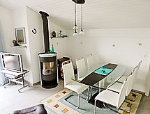 "Flodana", 3 rom leilighet 58 m2 i 1st etasje, beliggenhet mot sør. Vakkert og smakfullt møbler: åpen stor stue/spisestue med, 1 sovesoffa, vedovn, spisebord, spisehjørne og kabel-TV (flatskjerms TV). Utgang til balkongen. 1 dobblet rom med skråtak med, 1 dobbeltseng (160 cm, lengde 200 cm). 1 barnerom med skråtak med 2 senger (90 cm lengde 200 cm). Åpent kjøkken (ovn, oppvaskmaskin, 4 keramiske kokeplater, mikrobølgeovn, grill, elektrisk kaffemaskin, raclettegrill (ost)). Utgang til balkongen. Bad/WC. 2 balkonger. Terrassemøbler, liggestoler (2), sitteplass. Hærlig panoramautsikt av vannet, fjellene, dalen og landskapet. Fasiliteter: strykejern, høy barnestol barneseng for barn opp til 2 år (ekstra), hårføner. Internett (trådløs LAN [WLAN], gratis). Parkeringsplass (1 Bil) ved hbrukt. Vennligst merk: røykfri bolig. Den har en veranda. En overbygd parkering er tilgjengelig. Den har en Internett-tilkobling. En mikrobølgeovn er tilgjengelig.- fasiliteter