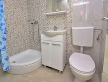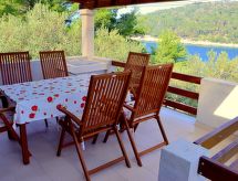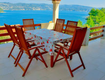 3 rom hus 55 m2, beliggenhet mot nord. 1 rom med, 1 dobbeltseng (160 cm, lengde 200 cm), dusj/WC. 1 rom med 2 senger (90 cm lengde 190 cm). 1 rom med, 1 dobbeltseng (2 x 90 cm, lengde 200 cm). Åpent kjøkken (2 kokeplater, frys) med spisebord, satelit-TV (flatskjerms TV). Utgang til terrassen. Dusj/WC. Terrasse 20 m2, dekt. Terrassemøbler. Hærlig utsikt av havet. Kjæledyr / hund tillatt 1 kjæledyr / hund tillatt. Bare solens oppvarming av vann. Vann (sisterne). Daglig rengjøring under dusjen tar liten tid. Dusjen er klar.- fasiliteter