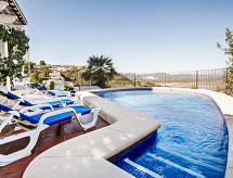 "Villa Flores", 4 rom hus. Komfortabelt og vakkert møbler: stue/spisestue med, satelit-TV, digital TV, flatskjerms TV, air-conditioning og varmluft oppvarming. Åpent kjøkken (4 kokeplater, stekeovn, oppvaskmaskin, frys) med bar. Sep. WC. I underetasje: 3 rom, hvert rom med 2 senger (90 cm lengde 190 cm), vifte. Dusj, dusj/WC. Terrasse. Terrassemøbler, grill, liggestoler (4). Meget vakker panoramautsikt av havet, fjellene og dalen. Fasiliteter: vaskemaskin. Internett (trådløs LAN [WLAN], gratis). Parkeringsplass (2 Biler). AT-446216-A Spesielt etter en begivenhetsrik ferie hjelper et kortdusjbad med å oppdatere. En ekte glede takket være den tilgjengelige dusjen. Gir spektakulær utsikt over havet. Det er et privat basseng.- fasiliteter
