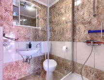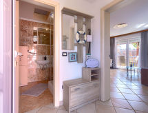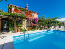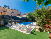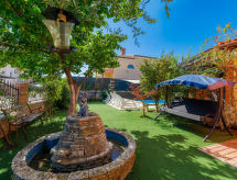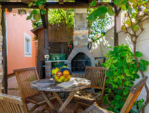 Murine: Fin tremannsbolig "Fontana". I det lille tettstedet Fratrici 1 km fra sentrum av Murine, 3 km fra sentrum av Umag, i en roligt posisjon, område med lite trafikk, 2.5 km fra sjøen, 2.5 km fra stranden. Fellesbruk: tomt 500 m2 (inngjerdet) med plen, 1 badebasseng firkantet (7 x 3 m, 24 m2, dybde 140 cm dyp, Sesongåpent: 23.Mai. - 28.Sep.). Utendørs dusj, terrasse (10 m2), grill (huske). I hbrukt: internetilkobbling. Parkering ved hbrukt på tomten. Butikk 2 km, supermarked 3 km, restaurant 1 km, sandstrand 2.5 km. Golfbane 5.5 km, tennis 2.5 km, idrettsenter 2.5 km. Enten profesjonell eller amatør, ikke nøl med og trene avrundingen på den nærliggende golfbanen.Interior