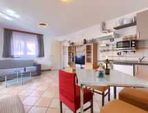 2 rom leilighet 42 m2 i 1st etasje. Stue/spisestue med, 1 dobbel sovesoffa (200 cm, lengde 200 cm), satelit-TV (flatskjerms TV), DVD og air-conditioning. Utgang til terrassen. 1 rom med, 1 dobbeltseng (160 cm, lengde 200 cm). Åpent kjøkken (2 kokeplater, mikrobølgeovn). Dusj/WC. Oppvarming (ekstra). Terrasse 10 m2. Terrassemøbler. Utsikt av svømmebassenget. Fasiliteter: Internett (trådløs LAN [WLAN], gratis). Passer til grill. Den har et trådløst lokalnettverk (WLAN). Den har en DVD-spiller.- fasiliteter