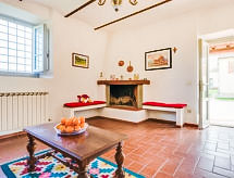 "Forno", 3 rom leilighet 90 m2 på 2 etasjer, på bakkeplan. Enkelt møbler: stue med, åpen peis og TV (flatskjerms TV). Kjøkken (4 kokeplater, stekeovn, frys) med spisebord. øverste etasje: 1 dobblet rom. 1 rom med 3 senger. Dusj/bidé/WC. Gassoppvarming. Liten terrasse. Terrassemøbler. Fasiliteter: Internett (trådløs LAN [WLAN], gratis). Kjæledyr / hund tillatt 1 kjæledyr / hund tillatt. Spontane ideer oppstår ofte under dusjen. Kanskje hennes nye roman eller sang vil bli opprettet i løpet av disse ferien! Uansett, en dusj er tilgjengelig. En ferie godbit for mennesker og dyr. Dette er en hund og katt vennlig ferie innkvartering. Med inngjerdet tomt. Huset er også utstyrt med en overbygd parkeringsplass. Det er WLAN (Wireless Local Area Network). Et bordtennisbord er tilgjengelig. En ovn er tilgjengelig.- fasiliteter