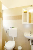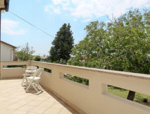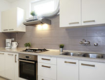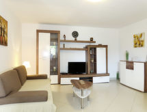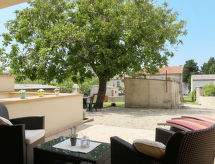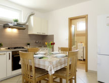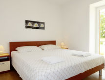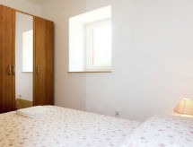 4 rom halvpart av tomannsbolig 110 m2 på 2 etasjer. Stue/spisestue med, satelit-TV og air-conditioning. Åpent kjøkken (1 kokeplate, ovn, 3 gassbrennere, brødrister, vannkoker, frys, elektrisk kaffemaskin). Dusj/WC. øverste etasje: inngang med, air-conditioning. 1 rom med, 1 dobbeltseng (160 cm, lengde 200 cm). 1 rom med, 1 dobbeltseng (180 cm, lengde 200 cm). Utgang til balkongen. 1 rom med 1 seng. Sep. WC. Balkong 13 m2, terrasse 35 m2 delvis dekt. Terrassemøbler, balkongmøbler, liggestoler. Fasiliteter: Internett (trådløs LAN [WLAN], gratis). Vennligst merk: røykfritt hus. Passer til grill. En vaskemaskin er tilgjengelig for bruk.- fasiliteter