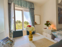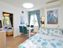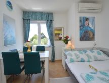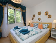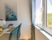 2 rom leilighet 35 m2 i 1st etasje, beliggenhet mot nord-øst. Vakkert og koseligt møbler: stue/spisestue med, 1 dobbel sovesoffa (140 cm, lengde 200 cm), satelit-TV (flatskjerms TV), air-conditioning. 1 rom med, 1 dobbeltseng (160 cm, lengde 200 cm). Utgang til balkongen. Åpent kjøkken (oppvaskmaskin, 4 keramiske kokeplater, vannkoker, mikrobølgeovn, frys, elektrisk kaffemaskin). Dusj/bidé/WC. Balkong 4 m2. Balkongmøbler. Fasiliteter: Internett (trådløs LAN [WLAN], gratis). Avslapping og livsstil i hagen er uunnværlig på ferie. Lekeplassen, som er egnet for barn, er tilgjengelig. Den har en veranda. Huset er også utstyrt med oppvaskmaskin.- fasiliteter