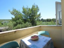 Tribunj 3 km fra Vodice: Fin flermannsbolig "Friedrich". I det lille tettstedet Sovlje 1.5 km fra sentrum av Tribunj, i en roligt, solrikt posisjon, 250 m fra sjøen, 300 m fra stranden. Fellesbruk: velholdt hage (inngjerdet), 1 badebasseng (24 m2, dybde 150 cm dyp, Sesongåpent: 15.Mai. - 15.Okt.) med innbygdetrapper. Utendørs dusj, lysthus, hagemøbler, lekeplass. I hbrukt: internetilkobbling, vaskemaskin (for felles bruk ekstra). Parkering ved hbrukt. Butikk 1.3 km, restaurant 350 m, småstenstrand 400 m, strand ved klipper 300 m, betonglagt strand 400 m.Interior