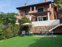 "Galademar", 4 rom rekkehus 90 m2 på 2 etasjer. Romlig og lys, komfortabelt møbler: stue/spisestue med, spisebord og digital TV. Utgang til sitteplass i hagen. Kjøkken (stekeovn, oppvaskmaskin, 4 keramiske kokeplater, mikrobølgeovn, frys, elektrisk kaffemaskin). Utgang til sitteplass i hagen. Sep. WC. Oppvarmingsalternativ. øverste etasje: 1 rom med, 1 dobbeltseng (135 cm, lengde 190 cm), bad/bidèt/WC. Utgang til balkongen. 1 rom med, 1 dobbeltseng (135 cm, lengde 190 cm). 1 rom med, 1 x 2 køysenger. Bad/bidé/WC. Terrassemøbler, grill, liggestoler. God utsikt av havet, landskapet og skogen. Fasiliteter: vaskemaskin, strykejern, høy barnestol barneseng for barn opp til 2 år, hårføner. Internett (trådløs LAN [WLAN], gratis). Vennligst merk: velegnet for familier. Bare TV ES, FR, DE. Bassenget som nevnes i beskrivelsen deles ikke med andre. HUTG021885 En barneseng er tilgjengelig. Huset er også utstyrt med oppvaskmaskin. Et basseng er tilgjengelig. Et privat basseng er tilgjengelig. Den har en komfyr.- fasiliteter