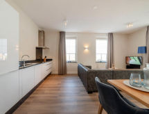 "Raadhuis", 3 rom leilighet 66 m2. Komfortabelt møbler: inngang med, separat WC. Åpen stue/spisestue med, spisebord og TV (flatskjerms TV), radio og CD-spiller. Utgang til balkongen. 2 dobbelt rom, hvert rom med 2 senger (90 cm lengde 210 cm), TV (flatskjerms TV). Åpent kjøkken (4 kokeplater, stekeovn, oppvaskmaskin, vannkoker, mikrobølgeovn, elektrisk kaffemaskin, Internet(Nespresso-not incl.)). Dusj/WC, boblebad, Badstu. Varmekabler i gulvet. Lager. Fasiliteter: hårføner. Internett (trådløs LAN [WLAN], gratis). Parkeringsplass (2 Biler). Vennligst merk: røykfritt hus. Røykvarsler. For ditt velvære, nyt boblebadet i ferien. En badstue er tilgjengelig. En mikrobølgeovn er også tilgjengelig.- fasiliteter