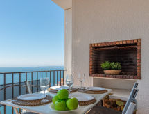 3 rom leilighet 60 m2 på 2 etasjer, beliggenhet mot sør-vest. Delvis renovert, praktiskt og komfortabelt møbler: stue med, spisebord og satelit-TV. Utgang til terrassen. 1 rom med 2 senger (90 cm lengde 190 cm). 1 rom med, 1 dobbeltseng (160 cm, lengde 190 cm). Lite, åpent kjøkken (3 keramiske kokeplater, brødrister, vannkoker, mikrobølgeovn, frys, elektrisk kaffemaskin). Dusj/WC, sep. WC. Oppvarmingsalternativ. Liten terrasse 6 m2. Terrassemøbler. Hærlig panoramautsikt av havet. Fasiliteter: vaskemaskin, strykejern, hårføner. Internett (trådløs LAN [WLAN], gratis). Vennligst merk: bare TV FR, DE. HUTG056716 Dusj er forfriskende og en dusj er til stede.- fasiliteter