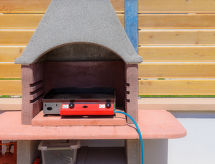 2 rom hus 45 m2. Stue/spisestue med, satelit-TV (flatskjerms TV), air-conditioning. 1 rom med, 1 dobbeltseng (160 cm, lengde 200 cm). Åpent kjøkken (oppvaskmaskin, 4 keramiske kokeplater, mikrobølgeovn, frys, elektrisk kaffemaskin). Dusj/WC. Terrasse 25 m2, dekt. Terrassemøbler, liggestoler. Fasiliteter: safe, barneseng, hårføner. Internett (trådløs LAN [WLAN], gratis). Kjæledyr / hund tillatt 1 kjæledyr / hund tillatt. For å holde det kult om sommeren, har dette feriehuset aircondition. Egnet for grilling. Et basseng er tilgjengelig. Det er et privat basseng. En mikrobølgeovn er tilgjengelig.- fasiliteter