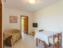 3 rom leilighet 50 m2 i 1st etasje. Stue/spisestue med, satelit-TV og air-conditioning. 1 rom med, 1 dobbeltseng. 1 rom med 2 senger. Åpent kjøkken (4 kokeplater, ovn, oppvaskmaskin, elektrisk kaffemaskin). Dusj/WC. Oppvarming. Balkong. Balkongmøbler. Fasiliteter: Internett (trådløs LAN [WLAN], gratis). Max kjæledyr / hund tillatt 1 kjæledyr / hund tillatt. Eiendommen er helt inngjerdet. Huset er også utstyrt med internettforbindelse. En ovn er tilgjengelig.- fasiliteter