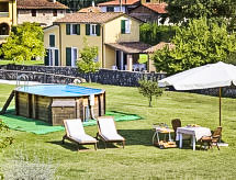Fondi 1 km fra Camaiore: Fin rekkehus "Gli Antichi". I en roligt, solrikt posisjon, 9 km fra sjøen, i det grønne. Privat: eng 500 m2, svømmebasseng (5 x 8 m, dybde 120 cm, Sesongåpent: 14.Mai. - 30.Sep.). Sitteplass (15 m2), hagemøbler, grill. I hbrukt: internetilkobbling, vaskemaskin (for felles bruk), tilgjengelige sykler. Tilgang med bil hele veien til hbrukt (50 m naturvei). Overdekket, parkering ved hbrukt. Kjøpesenter 1 km, restaurant 1 km, sandstrand "Lido di Camaiore" 9 km. Attraksjoner i nærheten: Forte dei Marmi 22 km, Lucca 28 km, Cinque Terre 78 km, Pisa 84 km. Vennligst merk: bil anbefales. Eieren bor på same tomt.Interior