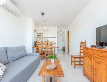 3 rom leilighet 60 m2. Delvis renovert i 2022, praktiskt og komfortabelt møbler: stue/spisestue med, 1 dobbel sovesoffa (140 cm, lengde 190 cm), spisebord, satelit-TV, air-conditioning og varmluft oppvarming. Utgang til balkongen. 1 rom med, 1 dobbeltseng (140 cm, lengde 190 cm). 1 barnerom med, 1 x 2 køysenger (80 cm, lengde 190 cm). Kjøkken (4 kokeplater, brødrister, mikrobølgeovn, elektrisk kaffemaskin). Bad/WC. Liten balkong 6 m2. Terrassemøbler. Utsikt av byen. Fasiliteter: vaskemaskin, strykejern, hårføner. Internett (trådløs LAN [WLAN], gratis). Vennligst merk: røykfri bolig. 1 lite kjæledyr / liten hund tillatt. Bare TV ES, FR. HUTG008660 En resepsjon er til din disposisjon for denne ferien.- fasiliteter