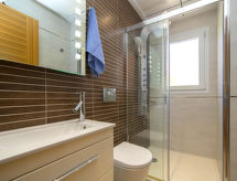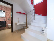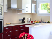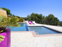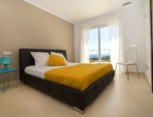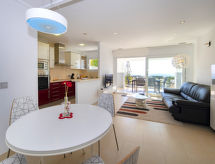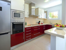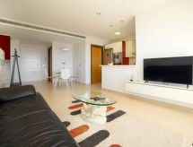 Moderne, fin rekkehus "Gran Sol Hills", rekkehus. 12 hus i residensen. 4 km fra sentrum av Calpe, i en roligt, solrikt, høyt posisjon boligområde, område med lite trafikk, 2 km fra sjøen, 2 km fra stranden. Fellesbruk: tomt (inngjerdet), 1 badebasseng (11 x 4 m, Sesongåpent: 01.Jan. - 31.Des.). Barnebasseng, utendørs dusj, terrasse. Privat: terrasse. Daglivarehandel 3 km, supermarked 3 km, restaurant 2 km, sandstrand "Playa La Fustera" 2 km (liten). Sporthavn 3 km, golfbane 8 km. Attraksjoner i nærheten: Aqualandia, Mundomar, Terra Mítica, Terra Natura, Benidorm Palace (Benidorm), Les Fonts de l'Algar, Castillo de Guadalest. Eieren godtar ikke noen ungdomsgrupper. Stille og rolig område. Stillhet og god oppførsel.Interior