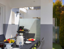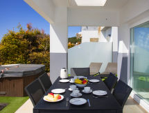 "Residencial Gran Sol Hills", 4 rom halvpart av tomannsbolig 132 m2 på 2 etasjer. Romlig og lys, vakkert og moderne møbler: åpen stue/spisestue med, satelit-TV, digital TV, air-conditioning og varmluft oppvarming. Utgang til terrassen. 1 rom med, 1 dobbeltseng, air-conditioning og varmluft oppvarming. Utgang til terrassen. Åpent kjøkken (stekeovn, oppvaskmaskin, 4 keramiske kokeplater, brødrister, vannkoker, mikrobølgeovn, elektrisk kaffemaskin). Dusj/WC. øverste etasje: 1 rom med, 1 dobbeltseng, dusj/WC, air-conditioning og varmluft oppvarming. 1 rom med, 1 dobbeltseng, dusj/bidèt/WC, dobbel servant, air-conditioning og varmluft oppvarming. Utgang til terrassen. Stor terrasse. Terrassemøbler, grill. Panoramautsikt av havet og området. Fasiliteter: vaskemaskin, strykejern, høy barnestol barneseng for barn opp til 2 år, hårføner. Internett (trådløs LAN [WLAN], gratis). Parkeringsplass (1 Bil). Velegnet for familier. R000000001 Med inngjerdet tomt. For din velvære, nyt boblebadet i ferier. Klimaanlegget sørger for god romtemperatur. Fordi den følelsesvennlige faktoren spiller en viktig rolle og er viktig for oss. Parkering er tilgjengelig. Den har et basseng. Et barnebasseng er tilgjengelig.- fasiliteter