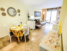 Puerto Cambrils: Fin, koselig leilighetshus "Greco". Utmerkt område: midt i sentrum, men roligt, 100 m fra sjøen, 100 m fra stranden. Fellesbruk: 1 badebasseng (Sesongåpent: 01.Jan. - 31.Des.). Utendørs dusj. I hbrukt: heis. Privat garasje (ekstra). Butikk, daglivarehandel 50 m, supermarked 200 m, restaurant 10 m, bar, bussholdeplass 50 m. Sporthavn 50 m. Attraksjoner i nærheten: Port Aventura 10 km. Grupper med tenåringer- bare ved forespørsel. For maksimal ferieopplevelse har fornøyelsesparken åpnet sine dører og inviterer til spennende opplevelser og mye tiltak.Interior