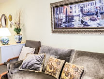 "Grekus", 3 rom leilighet 87 m2 i 1st etasje. Meget vakkert og smakfullt møbler: stue/spisestue med, TV og flatskjerms TV. Utgang til balkongen. 1 rom med, 1 dobbeltseng (180 cm, lengde 200 cm). 1 rom med, 1 uttrekkbar seng (2 pers. 2 x 90 cm, lengde 190 cm). Kjøkken (stekeovn, 4 keramiske kokeplater, mikrobølgeovn, elektrisk kaffemaskin). 2 bad/WC. Airconditioning. Balkong. Balkongmøbler. Fasiliteter: vaskemaskin, tørketrommel. Garasje plass nr 34 (ekstra). Vennligst merk: velegnet for familier. Parkeringsplass bare for små biler. HUTT033112 Et badekar er tilgjengelig. Objekt med heis. Huset er også utstyrt med en overbygd parkeringsplass. Den har et basseng. Hvis været ikke spiller, er det også en TV. Hva ville et moderne kjøkken være uten mikrobølgeovn? Den som selvfølgelig er tilgjengelig. En ovn er tilgjengelig.- fasiliteter