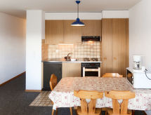 "Hameau D04", 3 rom leilighet 63 m2. Praktiskt møbler: stue/spisestue med, 1 sovesoffa og kabel-TV. Utgang til balkongen. 1 rom med 2 senger. 1 barnerom med, 1 x 2 køysenger. Åpent kjøkken (4 kokeplater, stekeovn, mikrobølgeovn, elektrisk kaffemaskin). Bad/WC. Balkong. Balkongmøbler. Vakker utsikt av fjellene og landskapet. Fasiliteter: Internett (trådløs LAN [WLAN], ekstra). Vennligst merk: røykfri bolig. Praktisk med heisen til inngangsdøren. Huset er også utstyrt med en badstue. Huset er også utstyrt med et oppvarmet basseng. Huset er også utstyrt med en tørketrommel. En mikrobølgeovn er tilgjengelig.- Kjennetegn ved boligen