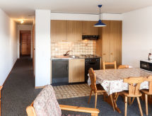 Residens "Le Hameau", 1'850 m.o.h. Ovenfor Les Collons, i en roligt posisjon, beliggenhet mot øst. Fellesbruk: 1 badebasseng oppvarmt (10 x 5 m, dybde 125- 160 cm dyp, Sesongåpent: 01.Jul. - 15.Sep. og 20.Des. - 18.Apr. bassengets åpningstider: 09:00-21:00). Dusj/WC ved bassenget. I hbrukt: badstu, avslappningsrom, heis, skirom, vaskemaskin, tørketrommel (for felles bruk). Overdekket, parkering (begrenset antall plasser). Supermarked 900 m, restaurant 50 m. Gondolheis, skibakker 150 m. Attraksjoner i nærheten: Sion 18 km. Vennligst merk: nøkkelleveringen skjer i Imalp Thyon SA i Les Collons. Bildet er et eksempel. Det er flere lignende leiligheter i samme hus. Alle hus/leiligheter er individuellt inredde. Hvis du vil gjøre en fullstendig vellykket fotturferie, er det i gode hender. Området er flatt og egnet for dagsturer. Perfekt langrennsløyper venter deg på stedet. For snowboardere er et virkelig utmerket feriedestinasjon.Interior