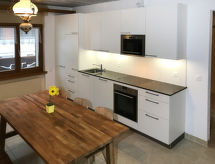 Koselig leilighetshus "Haus Quelle", 1'560 m.o.h. 5 leiligheter på eiendommen. I sentrum, 4 km fra sentrum av Saas-Fee, i en sentrale, roligt, solrikt posisjon, 100 m fra skiområdet. Fellesbruk: tomt. I hbrukt: boblebad (ekstra). Infrarød sauna, spaområde, skirom, sentralvarme. Tilgang med bil hele veien til hbrukt (fjellvei). Firhjulsdrift på bil anbefales. Parkering (for 8 biler, begrenset antall plasser) ved hbrukt. Butikk, daglivarehandel, restaurant, bussholdeplass 100 m, togstasjon "Visp" 18 km. Gondolheis, skisportenanlegg, skiutleie 100 m, skibussholdeplass 50 m, skiskole for barn, langrensløype 100 m. Velkjente skiområder: Kreuzboden/Hohsaas 100 m, Saas-Fee 4 km. Eieren godtar ingen grupper. Solen skinner og fjellet ringer. For fotturer et egnet sted. Den omkringliggende periferien er også et førsteklasses langrenns skianlegg. I regionen Saas-Grund er det en skøytebane, hvor du kan nyte turen på skidene. Akebakken i regionen gir en flott opplevelse med en fantastisk vinteratmosfære.Interior