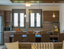 Fin, komfortabel villa "Helianthos", med 3 etasjer, frittstående, bygget i 2016. I området Panormos, i en roligt, solrikt posisjon, 400 m fra sjøen, 400 m fra stranden. Privat: vakker, velholdt hage m2 70 ha med, plen med solningsområde, svømmebasseng kantete (17 m2, dybde 145 cm, Sesongåpent: 01.Mar. - 30.Nov.). Utendørs dusj, bordtennis. I hbrukt: treningsrom. Sengetøyskift 2 ganger i uken. Håndkleskift 2 ganger i uken. Romrengjøring 2 ganger i uken. Parkering (for 2 biler) ved hbrukt. Daglivarehandel, supermarked, restaurant, bar, bakeri, café 500 m, sandstrand "Limanaki" 400 m, dykkesenter 1.4 km. Attraksjoner i nærheten: Melidoni Cave 11.5 km, Monastery of Arkadi 22 km, Rethymnon Old Town 23.3 km, Fortezza Castle 23.5 km, Archaeological Museum of Eleftherna 20 km, Military Museum of Chromonastiri 26.6 km. Vennligst merk: bil anbefales. Babyutstyr på forespørsel (inkl.). Grupper med tenåringer- bare ved forespørsel. Mulighet for fitness er tilgjengelig.Interior