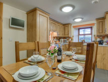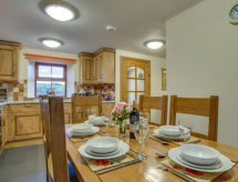 Fin hytte "Helyg", frittstående. I en roligt, solrikt posisjon, i det grønne. Fellesbruk: tomt. Privat: hage med plen. Sitteplass, hagemøbler, grill, parkering ved hbrukt. Butikk 3 km, daglivarehandel 3 km, restaurant 3 km, bar 3 km, togstasjon "Aberystwyth" 14 km, sandstrand "Tanybwlch Beach" 14 km. Sporthavn 13 km, golfbane(18 hull) 8 km. Attraksjoner i nærheten: Aberystwyth Castle & Beach 14 km, Devil's Bridge Falls 27 km, Clarach Bay 12 km. Turstier Snowdonia National Park 45 m. Vennligst merk: bil anbefales. Golf i Aberystwyth betyr sosialitet og fremfor alt morsomt. Din golfferie vil bli en uforglemmelig opplevelse når det gjelder sport, koselig og koselig.Interior
